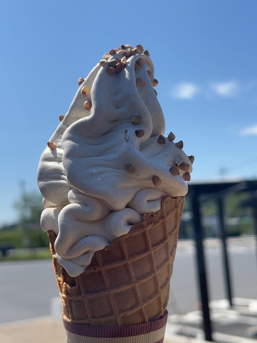 そばの味がしっかりしながらも甘いソフトクリームにしてみたとの事なんですが、普通のソフトクリームと味の違いが分からんかったです。だからこそなのか知らんけど普通に美味かったです。あとそばの実がトッピングされててナッツみたいなツブツブ感がよきでした。